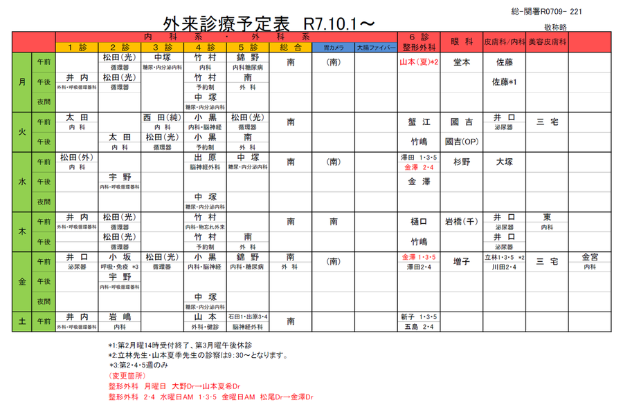 休診 中塚先生(内科) 10月31日(金)※夜間診療も休診します