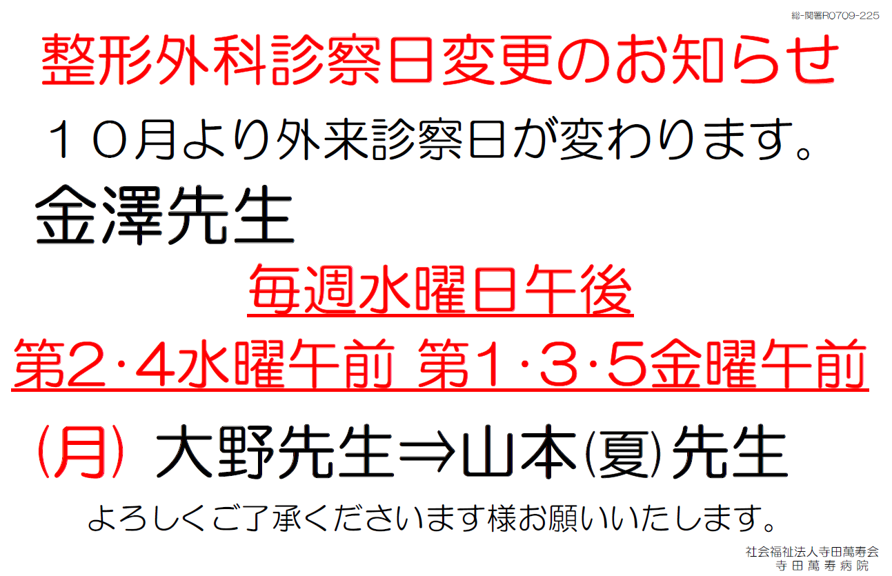 代診 樋口先生(整形外科) 10月23日(木) 代診 岸本先生